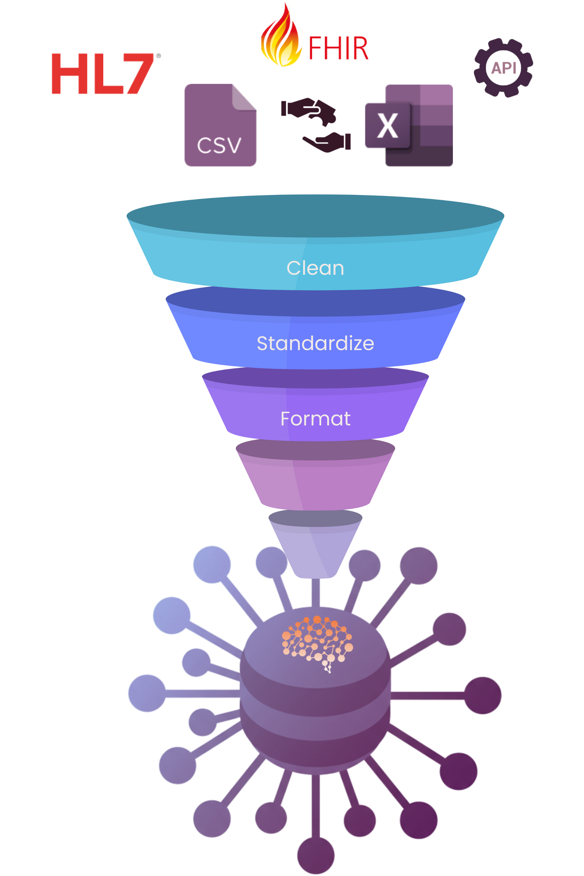 Data engine cleans and integrates healthcare data into a structured format for seamless interoperability.